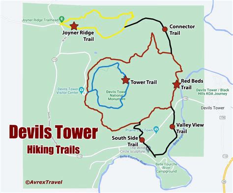 Devils Tower Hiking Map offers a detailed overview of the park's trails, including their difficulty level, distance, and estimated hiking time. Let's take a closer look at some of the most popular trails: